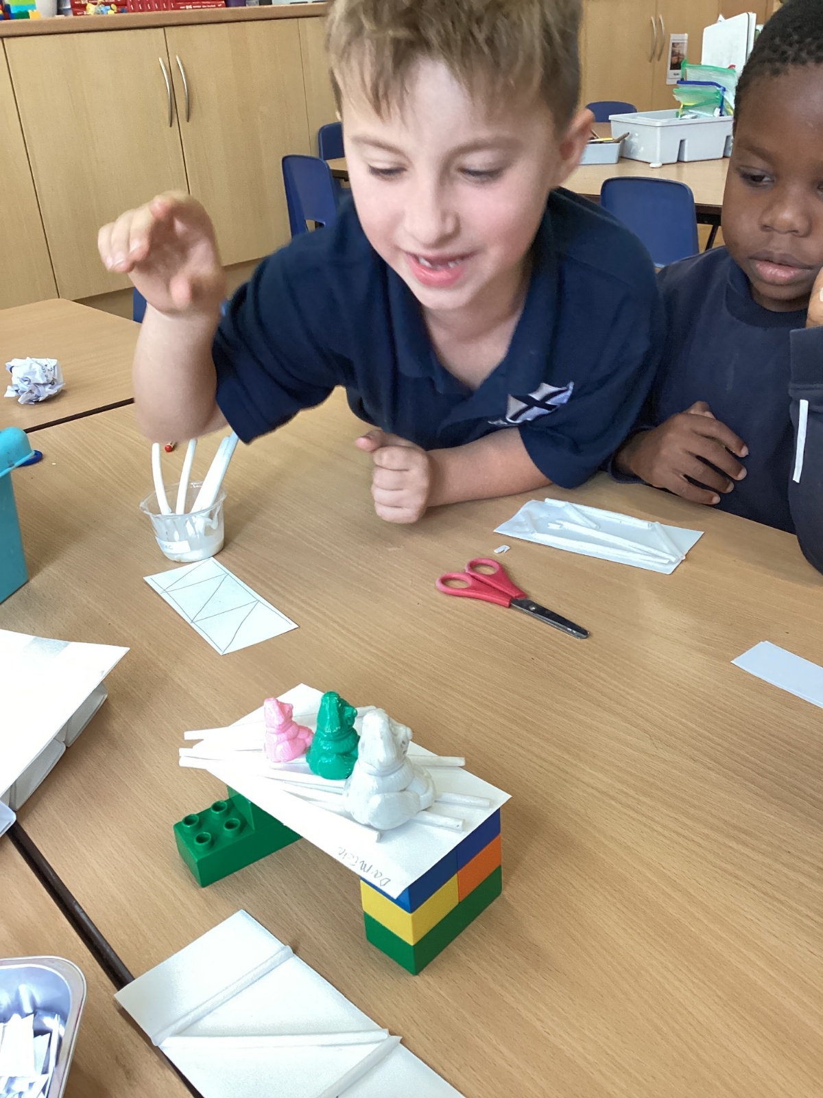 We needed to make a bridge which could take the weight of 3 counting dogs. A strip of paper was not strong enough. We experimented with strengthening the strip of paper and then tested it. Once we had tested it we altered our design.
