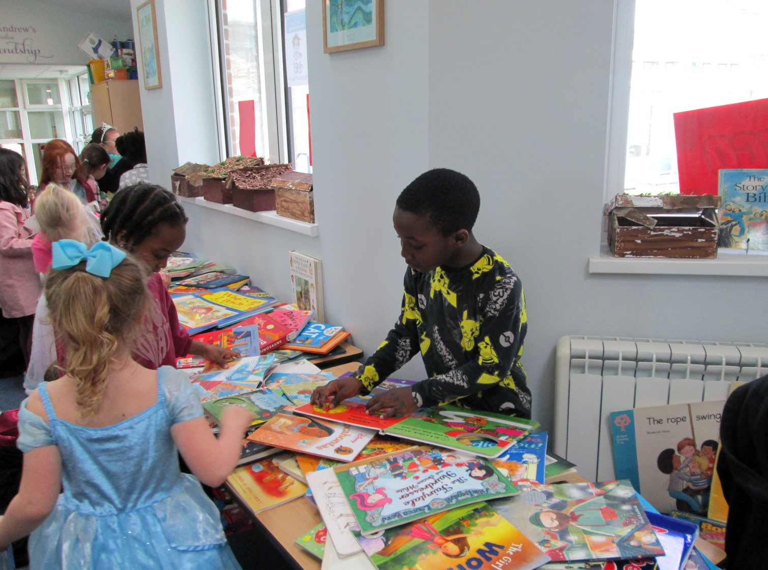 The children are having lots of fun at school today! We had a special World Book Day assembly, reading-based activities, guest story-tellers and a Bring and Buy book swap.