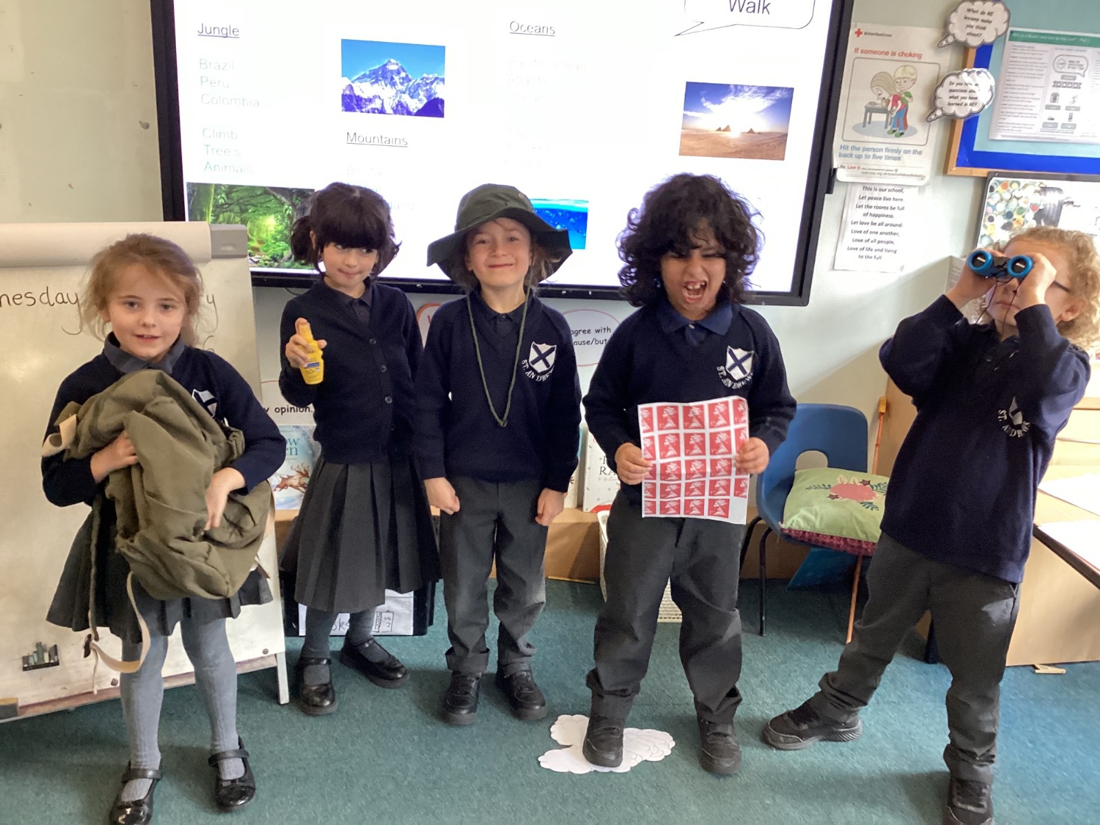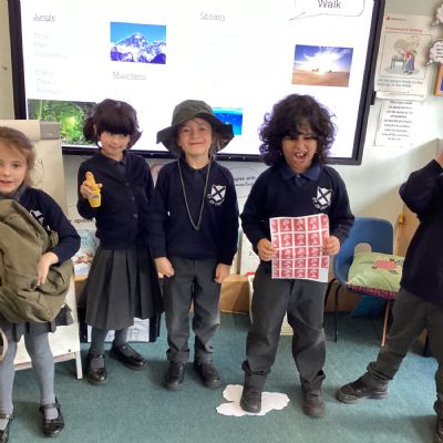 Explorers. Year 2 were surprised to find a rucksack in their classroom which had items in it. We decided that they thought it belonged to an explorer. This got us thinking about where we would like to explore!