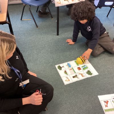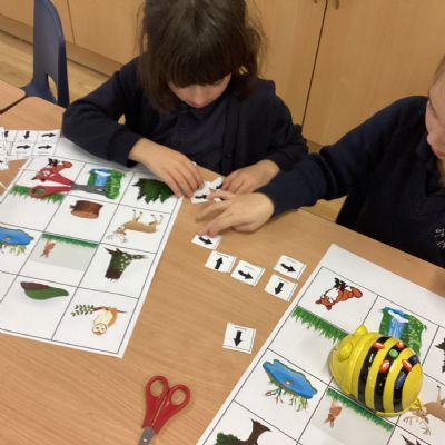 21.1.26: Computing. The children have been experimenting with algorithms. They have learnt that you need to program precise instructions to get their Beebot to go where they want it to.