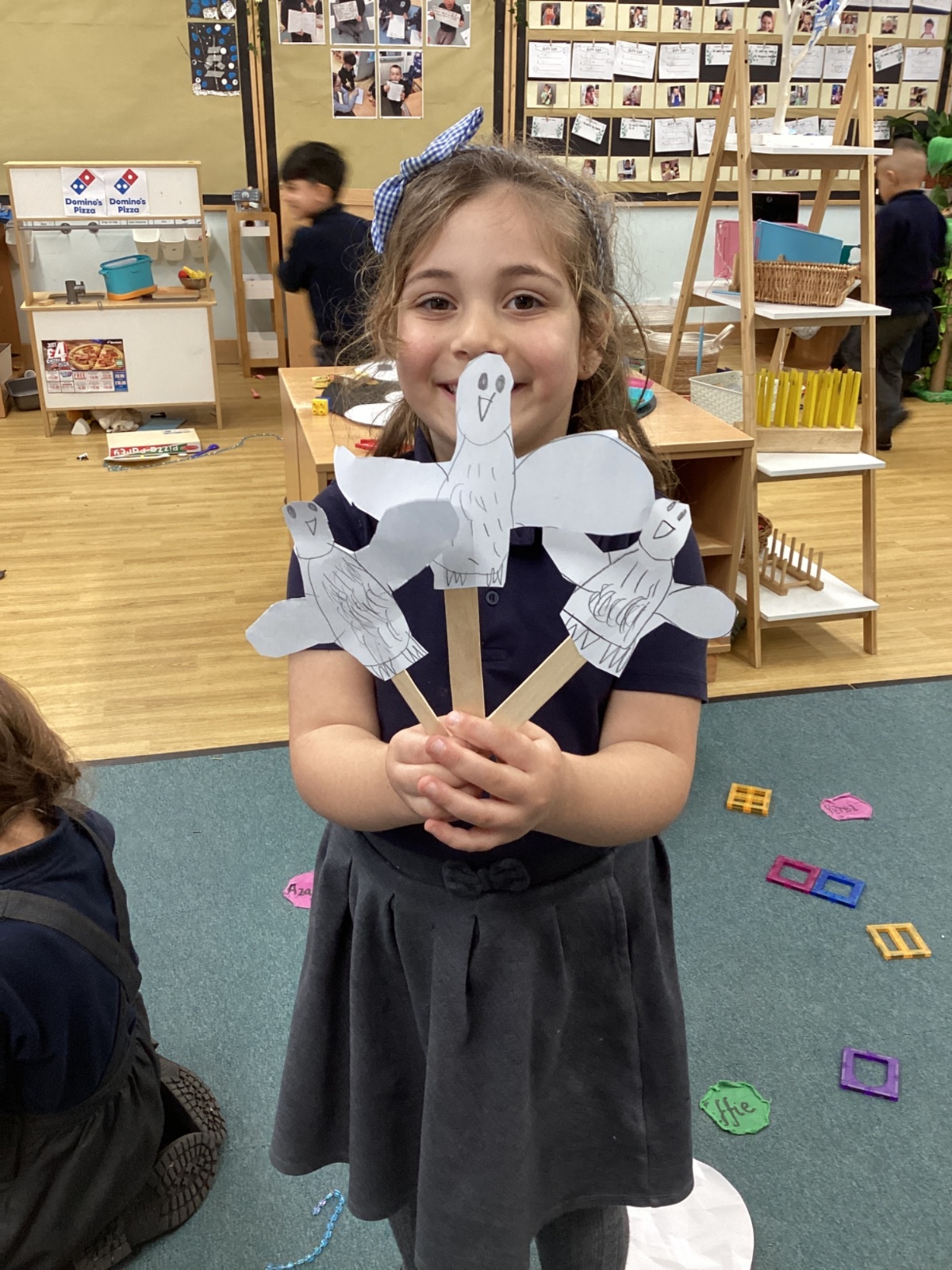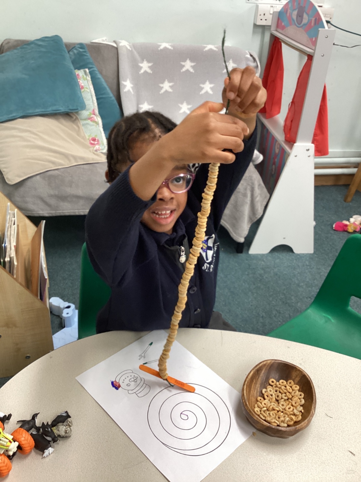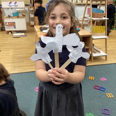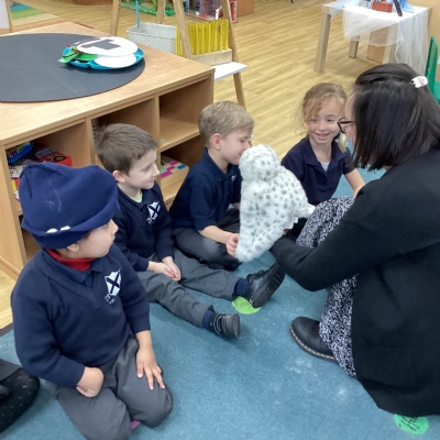 We had a visit from a snowy owl who had travelled from the Arctic to meet us. We sat so quietly and took it in turns to gently stroke the owl. Afterwards, some children made their own owls and others made mice to feed our snowy owl visitor!